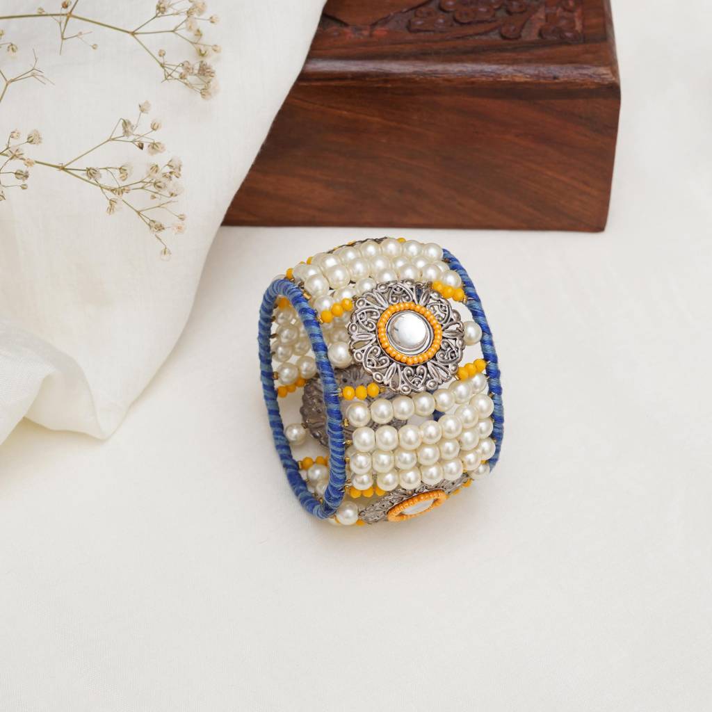 BeAbhikaVintage Look Pearl And Beaded Bangle