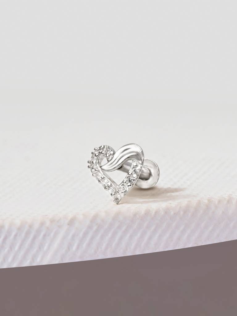 Touch925Wave-Heart Sparkle Silver Nose Pin