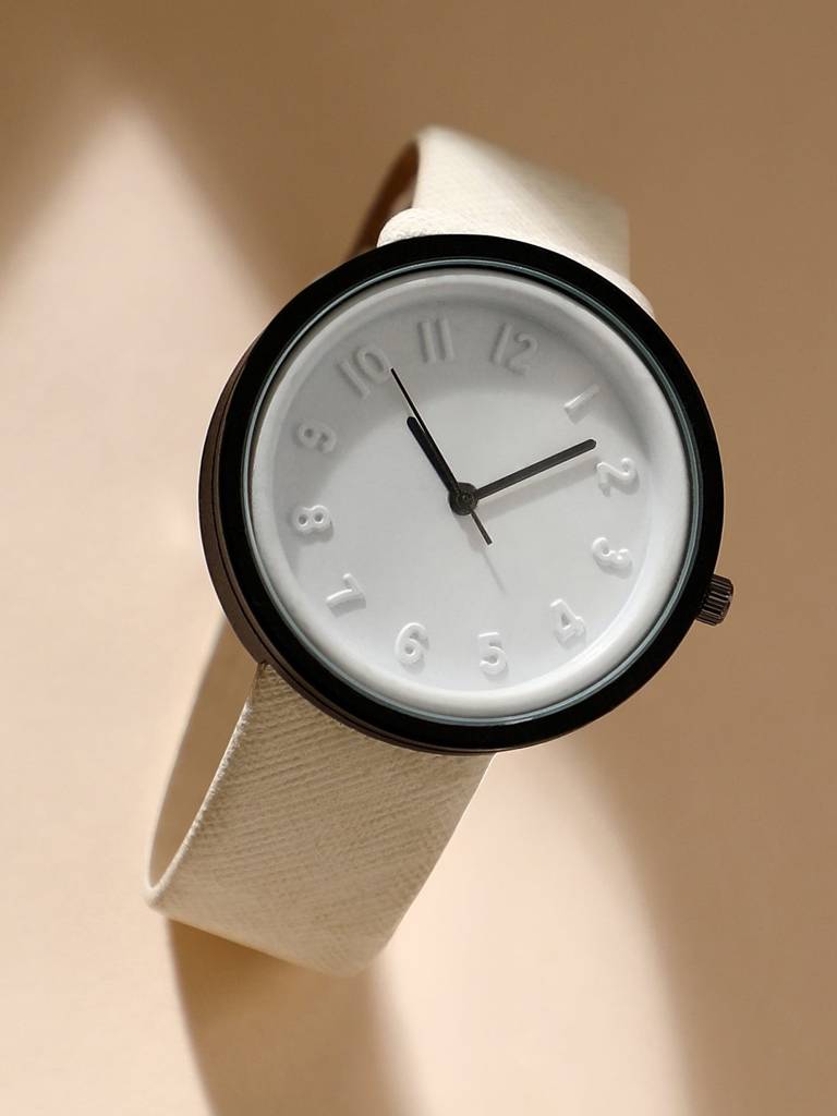 Haute SauceWhite & Black Analog Round Dial With Black Hour Marker & White Leather Strap