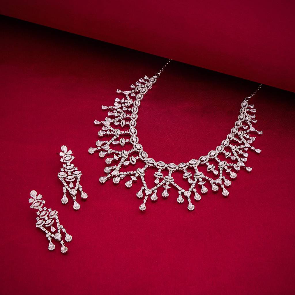 Kushal's Fashion JewelleryWhite Rhodium-Plated Party Zircon Jewellery Set - 454888 (18 Inches)