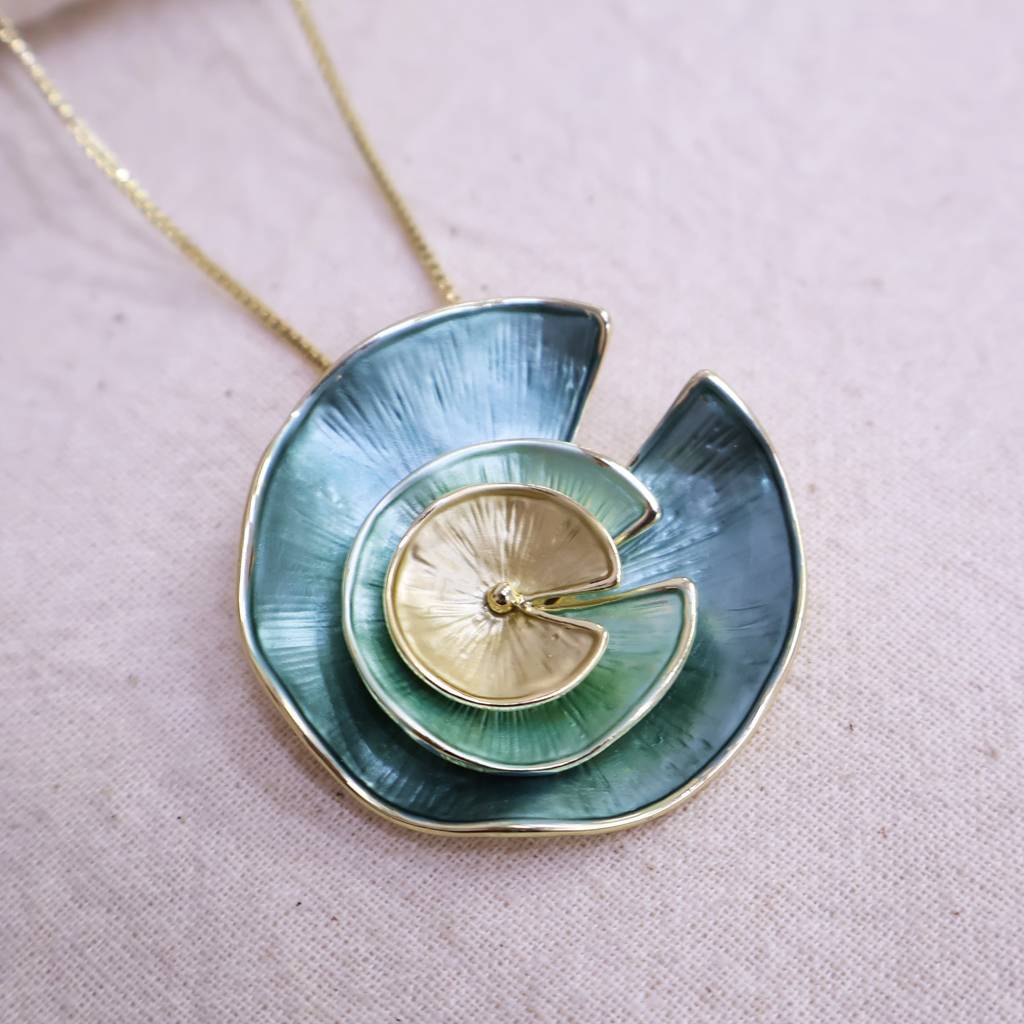 Women’S Spiral Disc Statement Necklace Set | Designer Teal & Gold Fashion Jewelry : LJPS004
