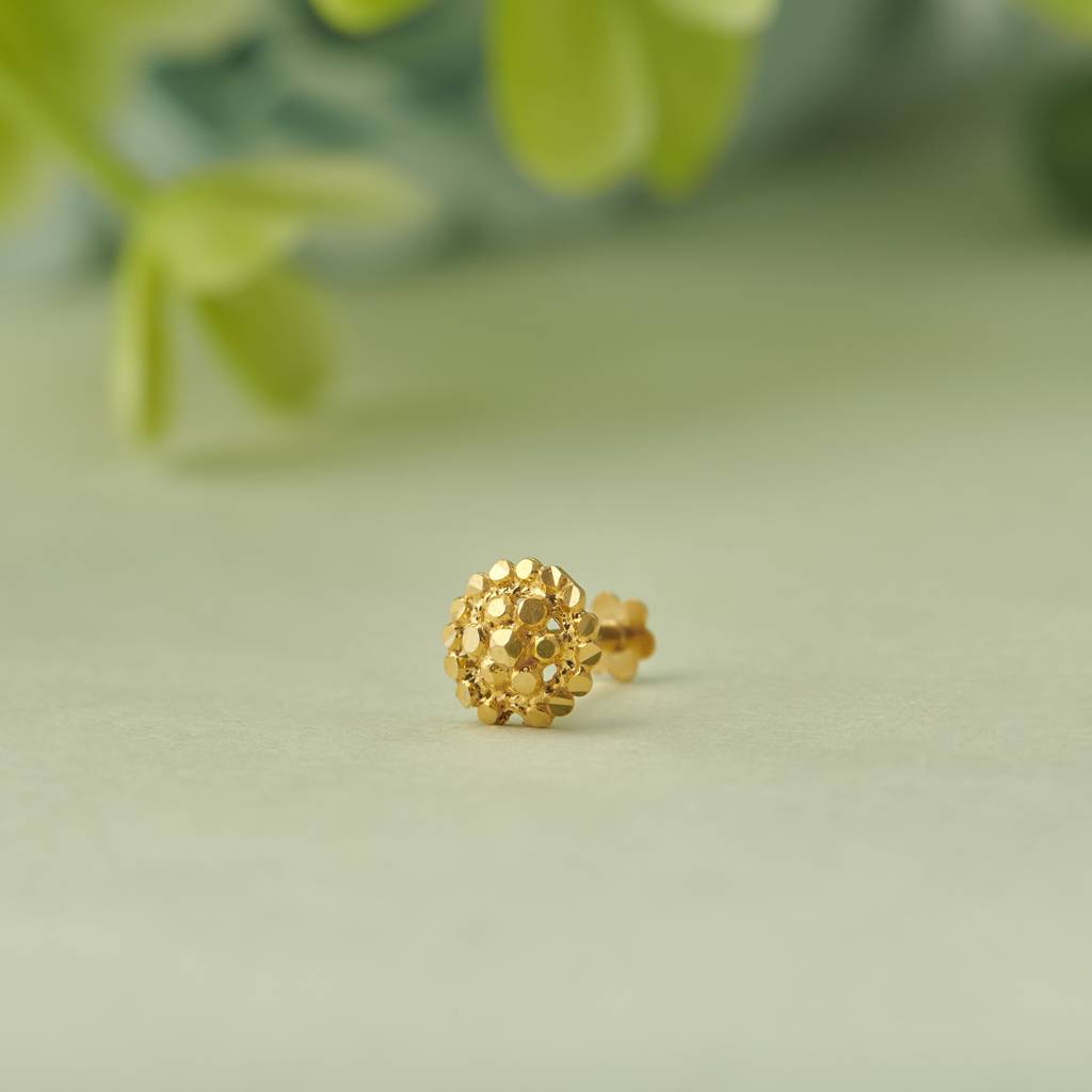 Yuvora 18K Yellow Gold Auric Corona Nose Pin For Women | Screw Back Closure | Bis Hallmarked | Pure Gold : PCNP1034-DC-18YG-IS