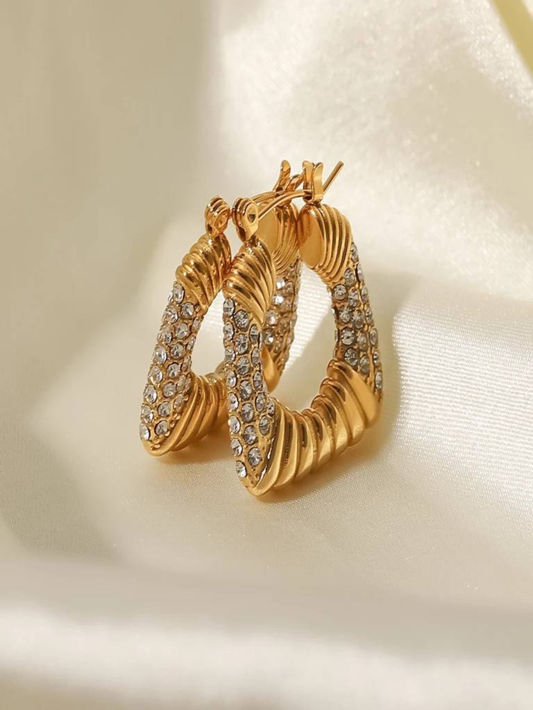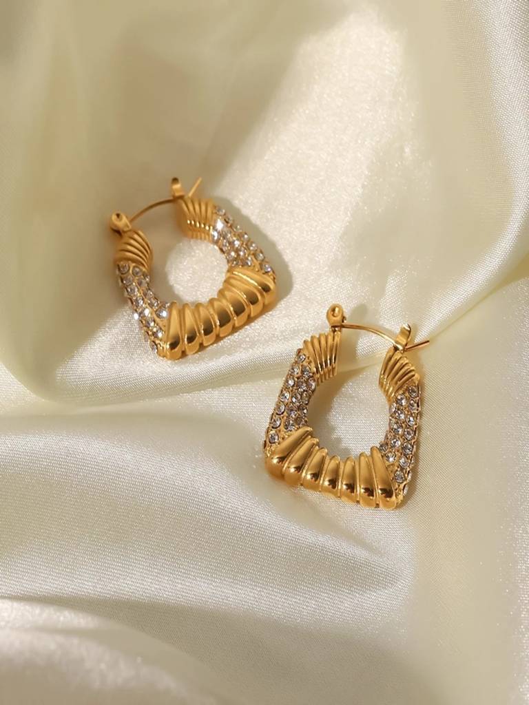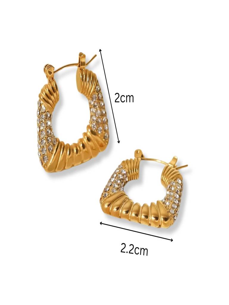 AQUASTREETZircon Square Hoop Earrings 18K Gold Plated Waterproof Anti-Tarnish
